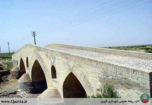 در مسير جاده قزوين به سمت بوئين زهرا پلي قرار دارد که در دوره شاه عباس ساخته شده است و فاصله آن تا قزوين 37 کيلومتر است. اين پل داراي سه دهانه است که دو تاي آنها بزرگتر و داراي عرضي در حدود 5/7 متر است. دهانه هاي سه گانه داراي قوس هاي تيزه دار مي باشند. کمترين عرض پايه ها که ميان دو قوش واقع شده اند، چهار متر است. برجسته ترين قسمت پل ميان دو قوس بزرگ قرار دارد. قسمتهاي پائين و پايه پل با سنگ و ملاط آهک، و قسمتهاي بالاي آن با آجر ساخته شده است.عرض پل در حدود 70/4 متر و طول آن نزديک به 52 متر است.