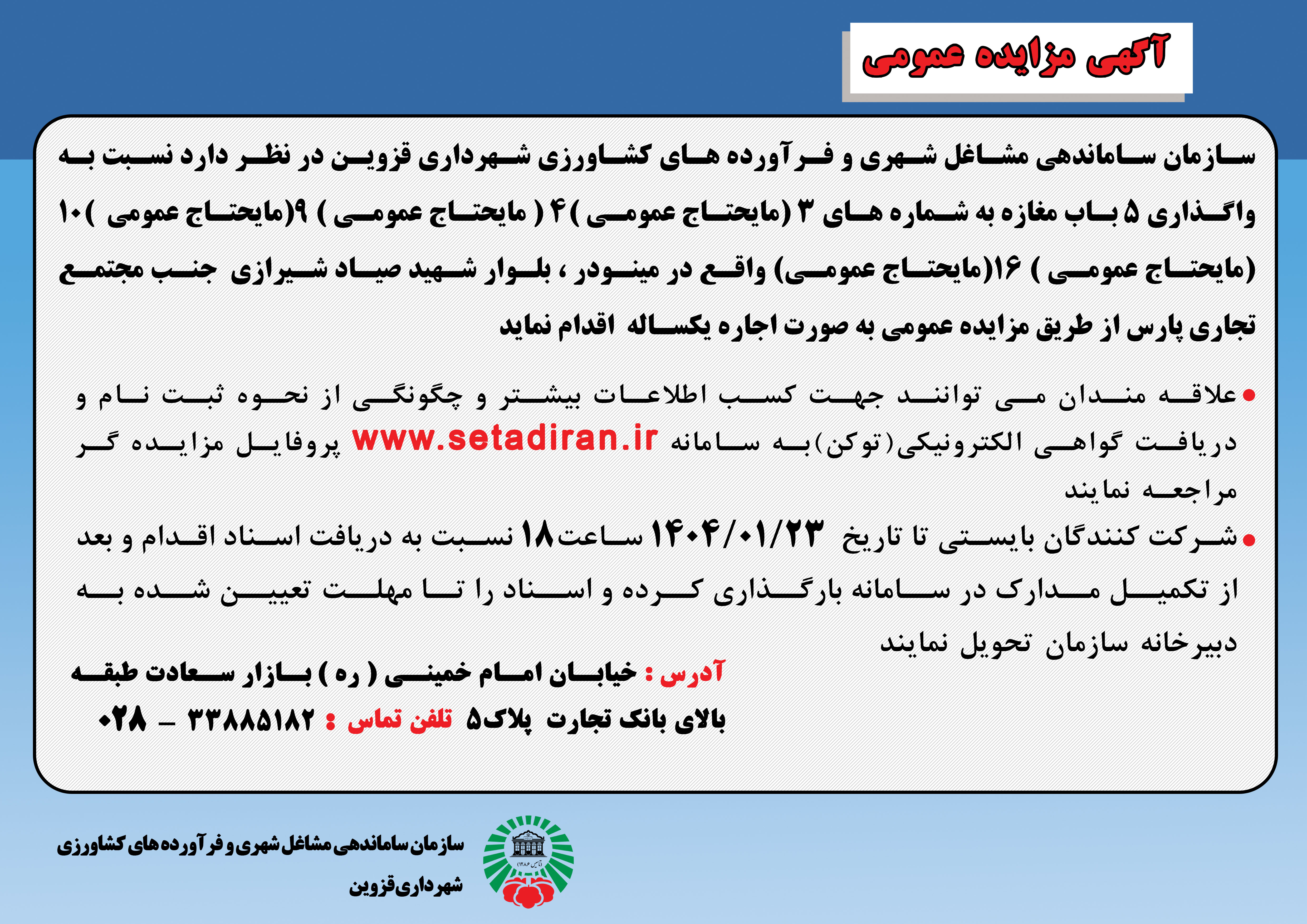 واكذارى 5 باب مغازه در بازارچه شهید صیاد شیرازی