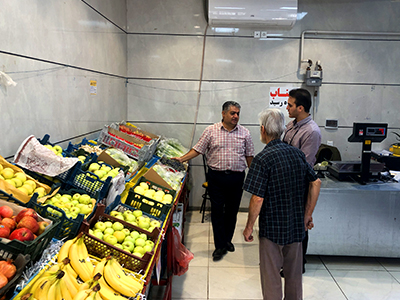 نظارت مستمر کارشناسان و ناظرین بر بازارچههای برکت با حضور رئیس اتحادیه میوهفروشان