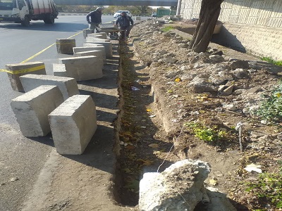 احداث کانال سنگی جاده بهشت فاطمه (س) بدون وقفه در دست اجراست.