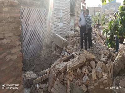 رفع خطر و تخریب بنای خطر ساز و خطر آفرین در کوچه سلیمی واقع در خیابان سلامگاه